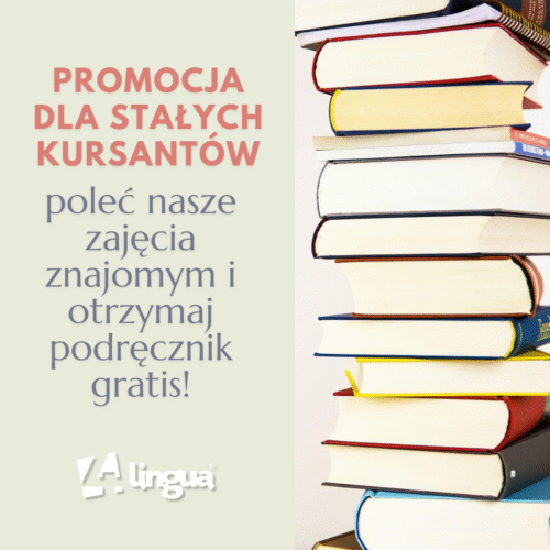 Każdy kursant 4Lingua, który poleci nową osobę do naszej szkoły, otrzyma bon na bezpłatny podręcznik.